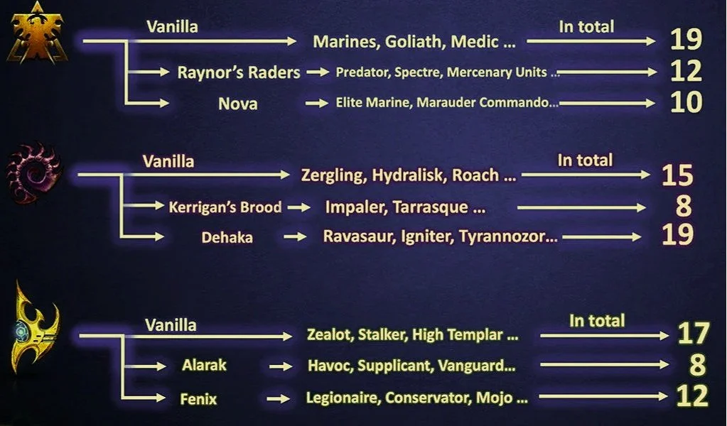 Die derzeitige Ankündigung umfasst alle Fraktionen: Terraner, Protoss und die Zerg.